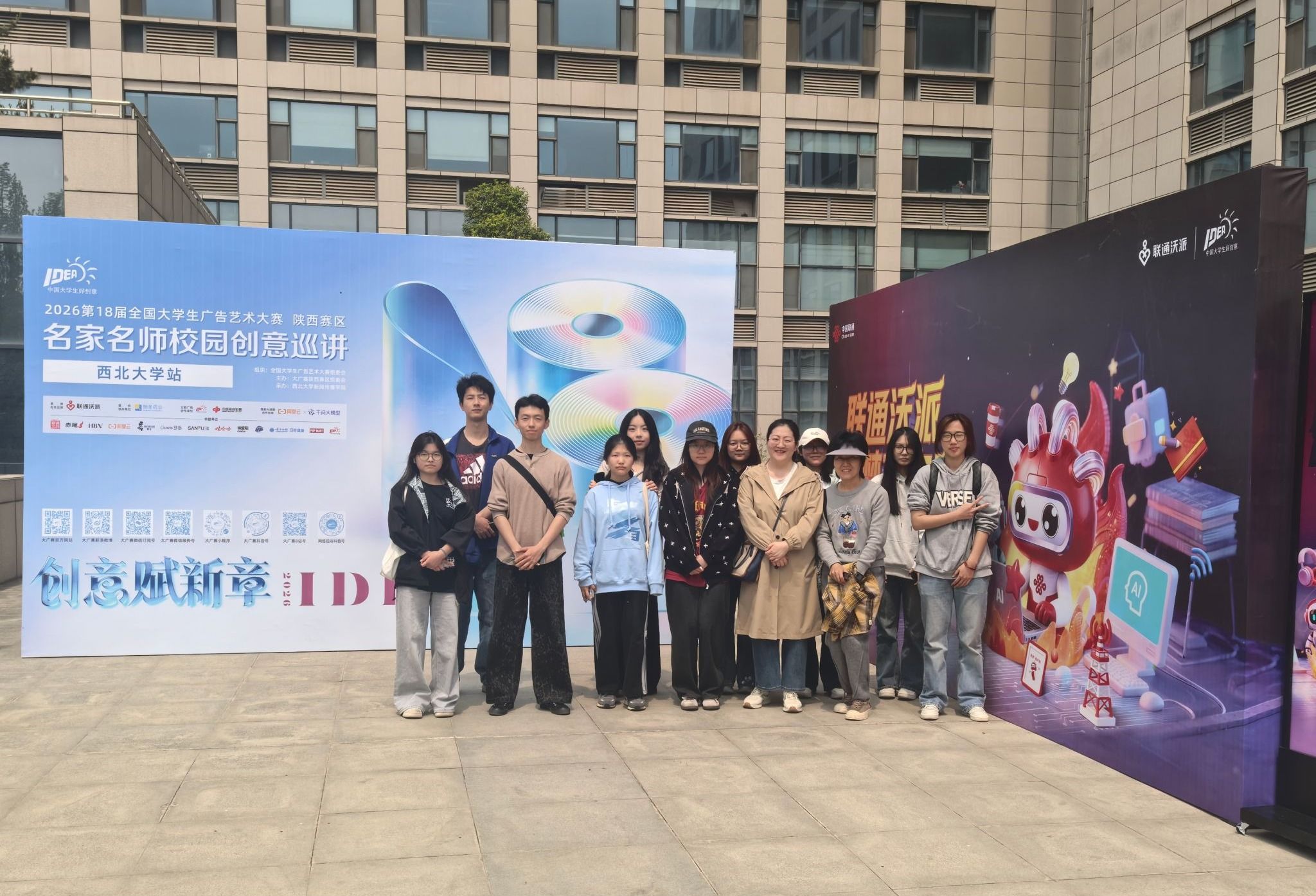 4月14日下午,文学院师生赴西北大学参加第18届大广赛陕西赛区名家名师校园创意巡讲活动。广告学系教师王静、岳晨带领10名学生参加。