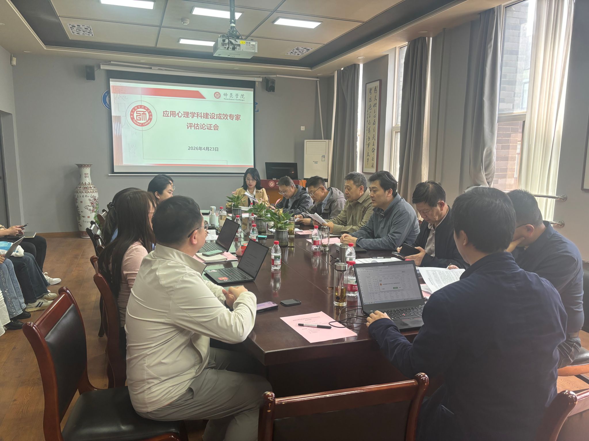 4月23日下午,学校学科建设成效评估专家组一行8人来师范学院调研指导应用心理学科建设工作,应用心理学科团队全体成员参会。会议由党委委员、研究生院院长韦炜主持。