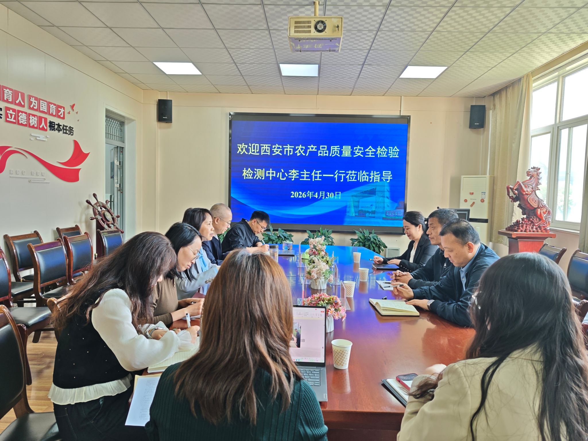 4月30日上午,西安市农产品质量安全检验检测中心总工于世锋、办公室主任宋琪、李菁一行到访化学工程学院座谈交流,院长翟云会、副院长屈颖娟及食品专业教师代表参会,就农产品全程质量控制与高质量发展相关项目进行交流。