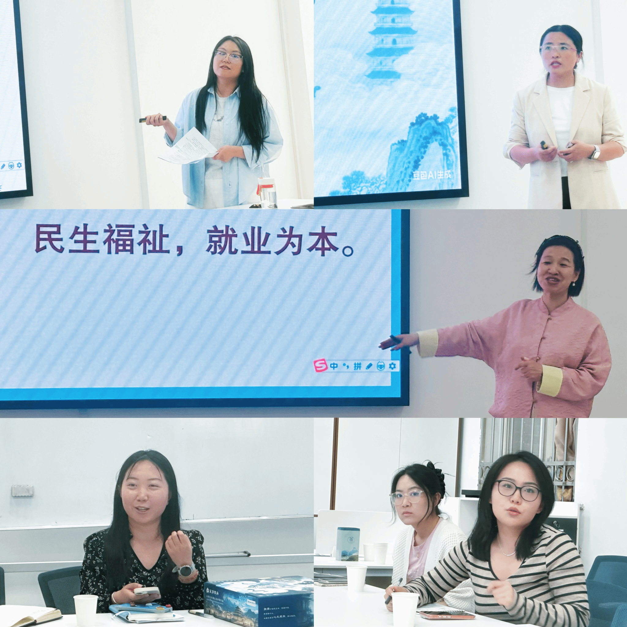 化学工程学院张莎老师、经济管理学院贺丹丹老师,结合省级生涯教育体验沙盘引导师专项培训所学,分别围绕沙盘工具介绍、实操活动流程、参训学习感悟等内容作专题交流。马克思主义学院副教授魏娟辉、生物与环境工程学院刘梦瑜老师则立足日常课堂教学实践,依次分享授课经验与育人心得。整场研讨氛围浓厚热烈,参会教师积极互动、深入研讨、互学互鉴,交流内容务实高效,研讨成果丰富扎实。