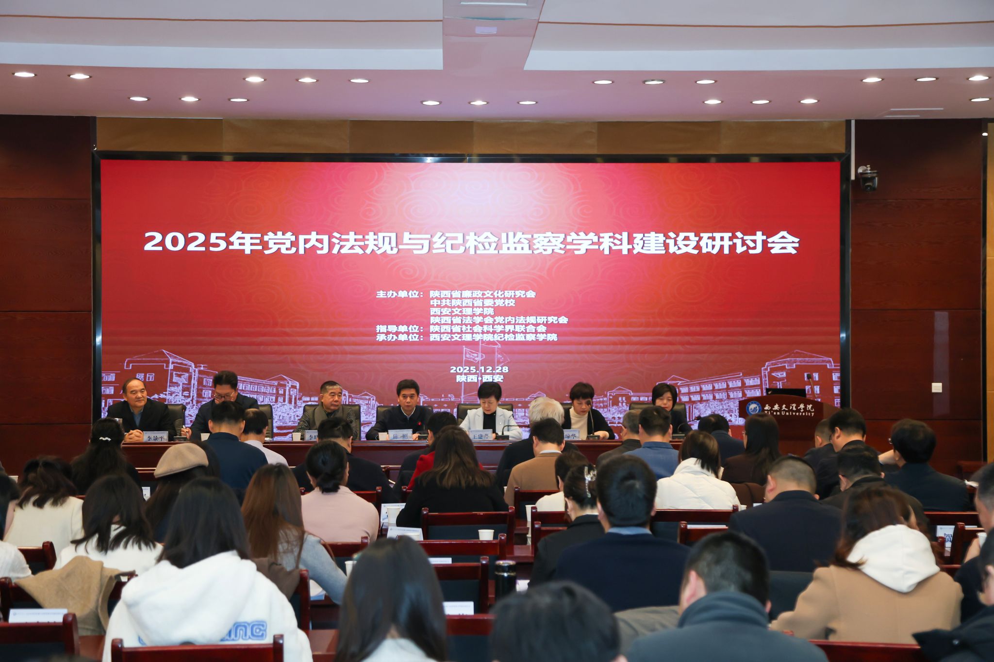 12月28日,由陕西省廉政文化研究会、中共陕西省委党校、陕西省法学会党内法规研究会联合主办,西安文理学院纪检监察学院承办的2025年党内法规与纪检监察学科建设研讨会在高新校区成功召开。省内外150余名专家学者齐聚文理,共研学科建设路径,共商廉政治理良方,为深化全面从严治党、赋能学科高质量发展注入强劲学术动能。