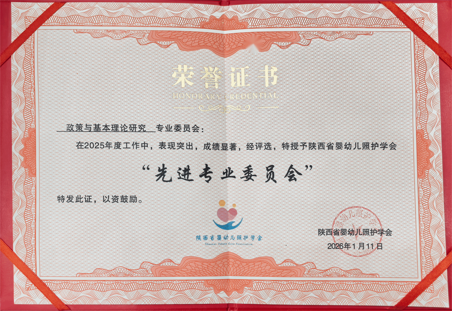 1月11日,陕西省婴幼儿照护学会2025年度总结会顺利举行。学会会长、西安交通大学第一附属医院博士生导师李晖教授,陕西省卫健委家庭人口处副处长陈小梦等领导专家出席会议。设在我校学前教育学院的陕西省婴幼儿照护学会政策与基本理论研究专业委员会再次荣获“先进单位”称号,专委会主任蔡军教授、副主任路娟教授等一行四人代表学院接受表彰。