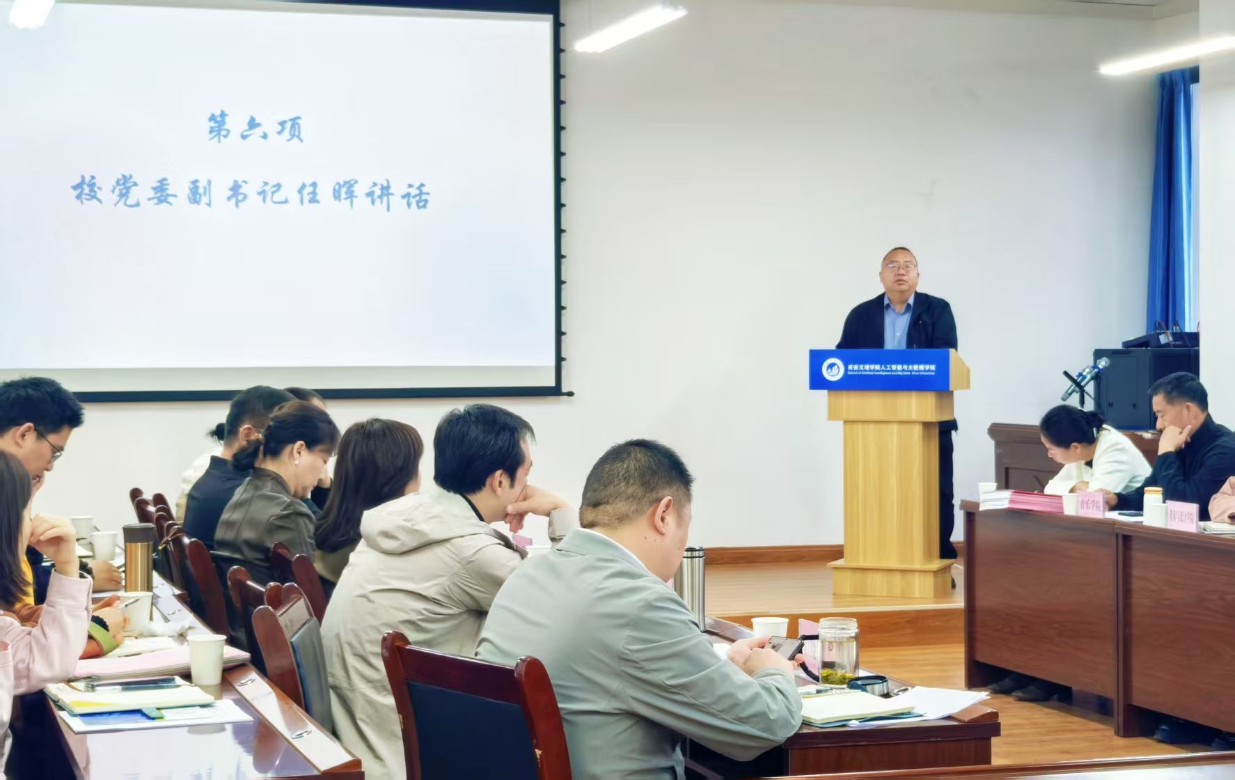 4月21日上午,我校春季学期学生工作推进会暨“学风建设展示周” 交流活动在人工智能与大数据学院召开。校党委副书记任晖出席并讲话,各学院党总支书记、副书记、全体辅导员及学工部干部参会,会议由张亚环主持。