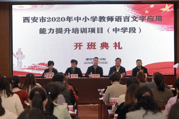 10月20日,由我校承办的西安市2020年中小学教师语言文字应用能力提升培训(中学段)开班典礼在太白校区举行。西安市教育局基教一处处长杨小文、副处长杨诚,陕西省人民广播电台播音员陈洁,继续教育学院院长王峰涛以及全市各区县111位从事语言文字工作的中学教师参加了开班仪式。仪式由继续教育学院副院长常瑾主持。