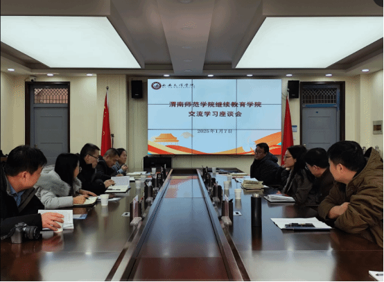 1月7日下午,渭南师范学院继续教育学院直属党支部书记周德锋、副院长苟鹏军、副院长宋丽萍等一行五人来我院进行调研交流。我院院长郑旻、书记樊建峰、副院长姚媛及成人教育科、培训科、学院办公室干部共同参加了座谈会。