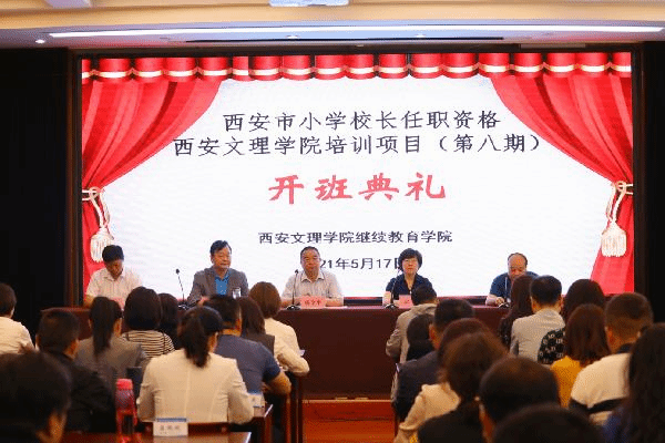 5月17日上午,由我校承办的西安市小学校长任职资格西安文理学院培训项目(第八期)开班典礼在太白校区举行。陕西省中小学校长幼儿园园长培训中心主任杨令平、继续教育学院院长王峰涛、副院长常瑾以及西安市各区县120余名学员参加了开班仪式。仪式由教师培训科科长乔育盟主持。
