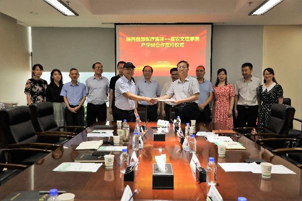 7月12日上午,西安文理学院校长陈刚、服务地方工作办公室主任田建邦、招生就业处处长杨姗姗、经济管理学院院长刘鸿明、副院长董冠华及养老服务管理专业教师李静一行6人前往陕西健康医疗集团洽谈交流,中陕核工业集团总经理朱华平、陕西健康医疗集团有限公司总经理董联合等热情接洽。双方就深化合作,签署了校企合作产学研协议,联合共建养老服务管理实习实践+就业一体化基地。