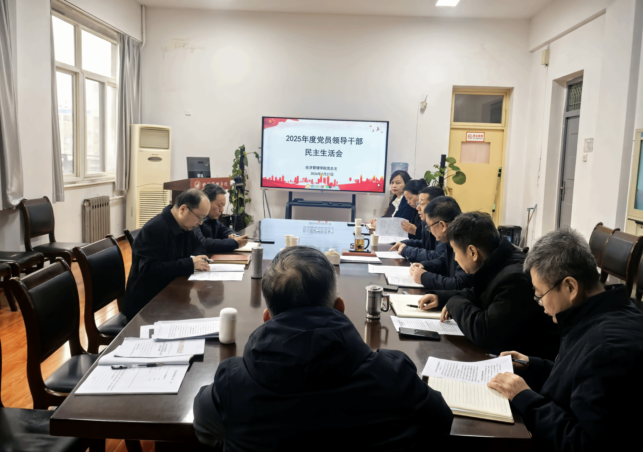 2026年2月27日上午,经济管理学院在学院三楼H0323会议室召开2025年度领导班子民主生活会。学院党总支书记陈沛主持会议,全体班子成员、学校党委第二督导检查组田琛锋、许刚参会。