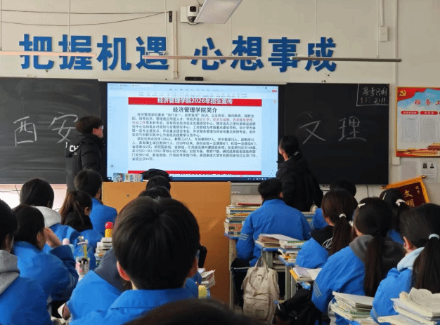 2026年1月20日,我回到母校府谷中学开展招生宣讲活动,宣讲地点设在高三教室。活动围绕我校办学特色、专业优势、校园生活及招生政策展开,通过PPT讲解、互动答疑、校友分享等形式,生动展示了我校的育人环境与发展平台。现场气氛热烈,学生积极提问,反馈良好。此次活动不仅为母校学子提供了升学指导,也增强了我校的知名度与吸引力,圆满实现了宣传目标。