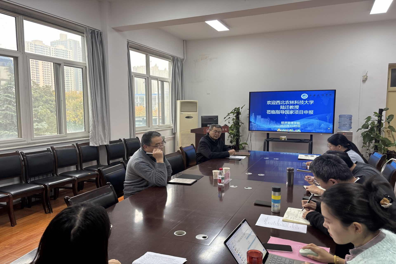 2025年11月5日下午,经济管理学院邀请西北农林科技大学陆迁教授指导国家级项目申报选题工作,副院长贺志武以及部分博士教师参加会议。