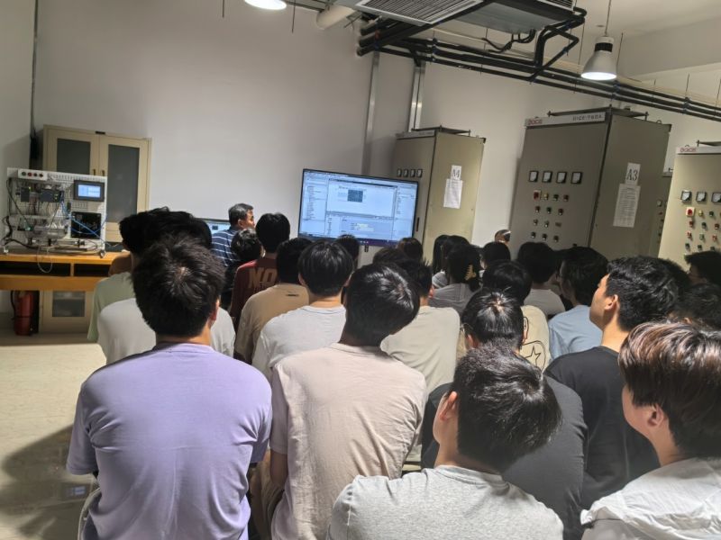 本次示范课上,李国柱老师开展了“温度控制系统设计”的项目案例教学。通过前测、随堂讨论、项目设计、结果展示和总结反思有序进行,展示了PLC处理模拟量和闭环温度控制的方法,分享了如何培养学生解决工程实际问题的能力,还通过思政元素引导学生了解工程伦理和工匠精神。观摩教师与李国柱老师进行了亲切交流。