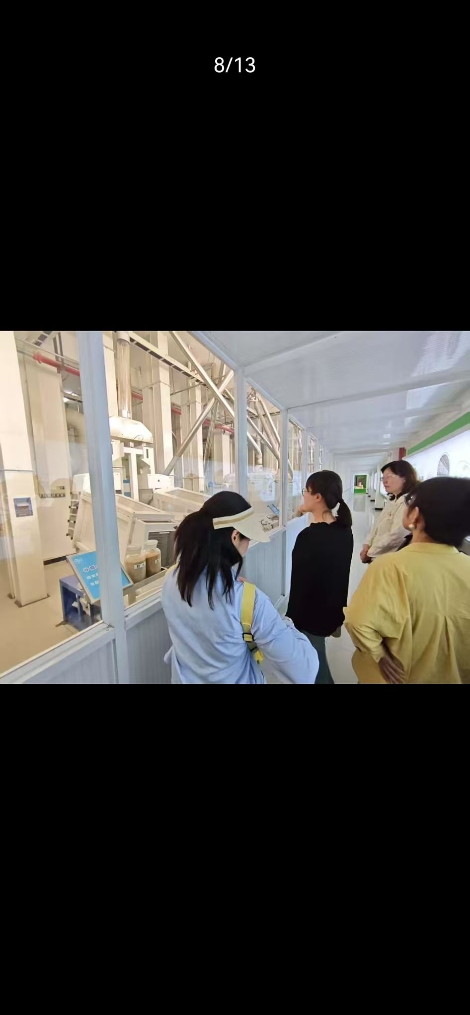 在体验馆专业讲解员的引导下,师生党员参观了企业发展历程展区,通过珍贵的历史影像与实物展品,系统了解爱菊集团从传统粮油企业向现代化智能工厂转型升级的发展轨迹。随后,师生走进全自动化粮油生产车间,近距离观摩智能仓储系统、自动灌装生产线及工业机器人等自动化设备的运行场景。自动化专业学生党员表示:“亲眼看到PLC控制系统在生产线上的实际应用,让我对课堂学习的运动控制原理有了更直观的认识”。