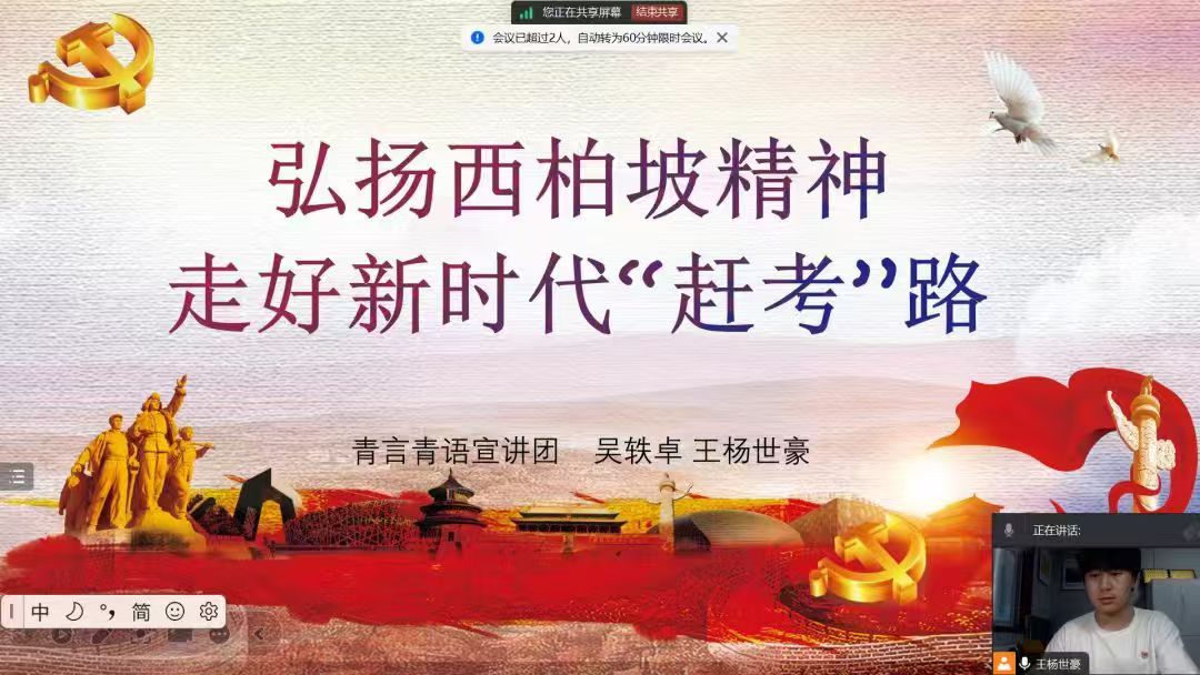 红色历史因铭记而永恒,红色精神因弘扬而不灭,红色基因因传承而鲜活。7月30日,大学生青言青语宣讲团面向物理光电师生党支部学生党小组的全体党员开展以“走好新时代‘赶考’路”为主题的西柏坡精神宣讲暨党小组专题活动。宣讲活动由学生党员、宣讲团成员吴轶卓主持,王杨世豪主讲。 王杨世豪同志从西柏坡精神的历史渊源、精神解析以及时代价值三个方面向学生党员进行了细致入微的讲解。他将毛泽东同志在党的七届二中全会上提出的“两个务必”与习近平总书记在党的二十大报告中提出的“三个务必”相结合,并指出从“两个务必”到“三个务必”,不变的是中国共产党人一以贯之、一脉相承的强烈忧患意识、良好工作作风与主动革命精神。这是我们党在不同历史时期战胜各种风险挑战、不断夺取胜利的强大精神力量和重要政治保证。他将西柏坡精神的内涵与时代价值同新时代大学生党员的时代使命相结合,号召学生党员要带头充分的学习和弘扬西柏坡精神,保持党的优良传统,深刻认识到自身的责任使命,勇于并善于投身于进一步全面深化改革和推进中国式现代化的进程中,充分发挥专业特长,在科技领域和行业中做出应有贡献。通过本次宣讲活动激励了学生党员赓续先辈遗志,做红色精神的传承人,让红色精神在更广阔的时空得到更广泛的传播,始终保持“赶考”的清醒和自觉,走好新时代“赶考”路,让青春在建设祖国中焕发绚丽光彩。