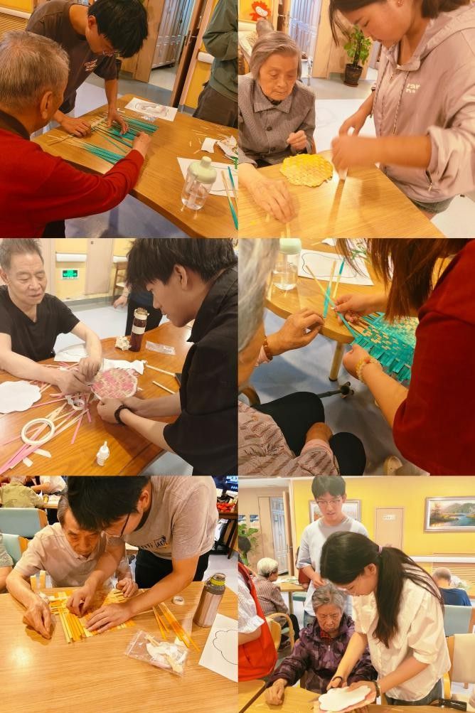活动现场,同学们精心筹备了竹扇、艾草锤的制作材料与工具。在耐心细致的讲解和演示下,老人们与同学们携手沉浸于手工艺创作的欢乐氛围。篾条在指尖灵活穿梭,仿佛编织出夏日的清凉;艾草的幽香袅袅飘散,寄托着对健康平安的美好祈愿。同学们认真聆听老人们讲述往昔的岁月故事与人生智慧,老人们则对同学们的青春活力与创新巧思赞叹不已,欢声笑语在场所内回荡,暖意融融。