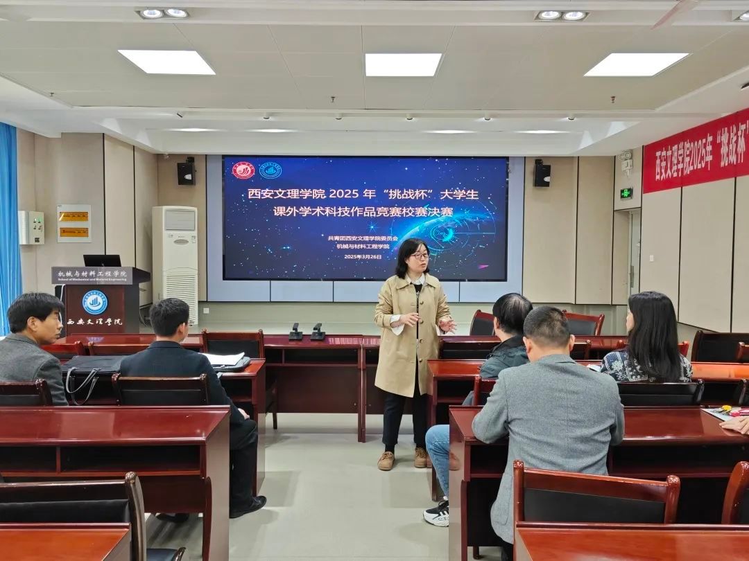 3月26日,由校团委主办、机械与材料工程学院承办的西安文理学院2025年"挑战杯"大学生课外学术科技作品竞赛校赛圆满收官。本届竞赛紧密围绕“学习贯彻党的二十大精神,培育科技创新生力军”主题,吸引了来自10个学院的89支团队参与,全面展现出我校青年学子服务国家战略需求的创新实践能力。经过校级初赛和决赛的激烈角逐,我校涌现出一批聚焦科技前沿、服务社会需求的优秀作品,生动展现了新时代文理学子的创新活力与使命担当。