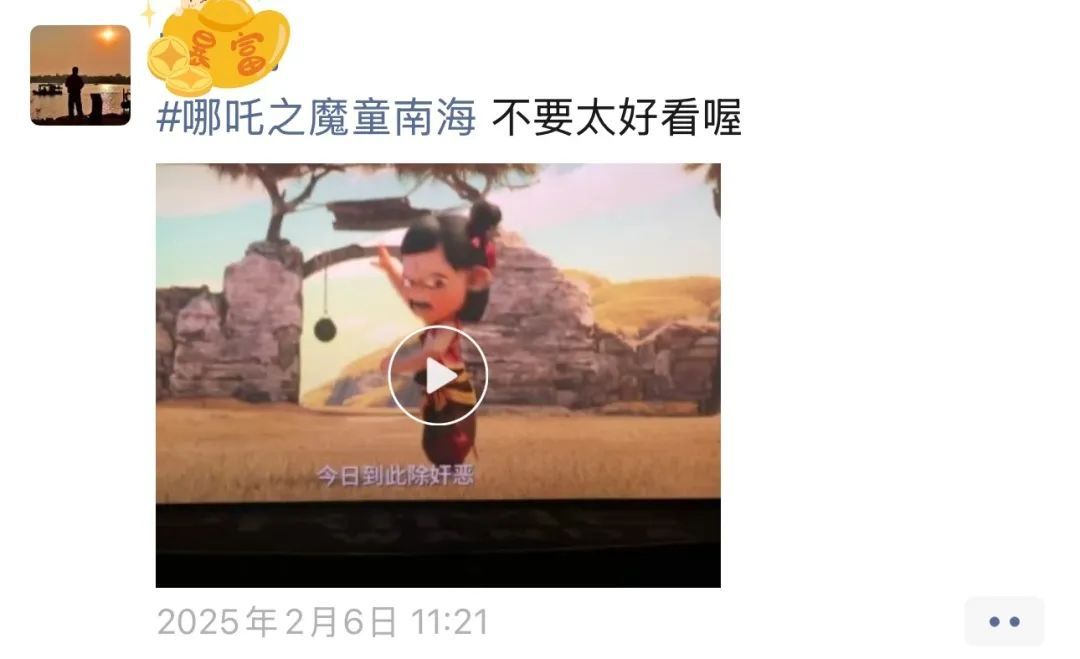 在观看完《哪吒2》后,被其精良的制作、跌宕的剧情和深刻的主题所打动,自发在社交平台分享观影感受,积极向身边人推荐,以实际行动支持国产动画电影的发展。《哪吒2》的成功,离不开其精良的制作和深刻的内涵,更离不开广大观众,尤其是年轻一代的支持,电影的成功也进一步增强青年的文化自信。相信在更多青年的助力下,《哪吒2》必将创造新的成绩,为中国动画电影的发展谱写新的篇章!