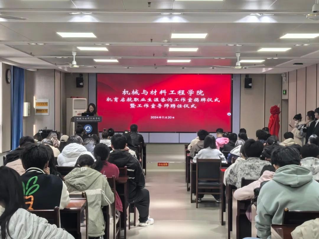 为全面落实教育部关于做好全国普通高校毕业生就业创业工作的决策部署,聚焦落实立德树人根本任务,按照学校关于开展生涯特色工作室建设要求,加强职业生涯发展教育工作,开展个性化的职业发展咨询和指导,引导学生树立正确择业观和成才观,助力高质量充分就业。11月20日,机械与材料工程学院举办机育启航职业生涯咨询工作室揭牌仪式暨工作室导师聘任仪式。校学生职业生涯发展教育中心主任冯宁、党总支书记武文斌、党总支副书记杜丽娜、教学副院长杨森林、工作室导师、学工办全体人员、学生代表共计80余人参会。会议由杜丽娜主持。