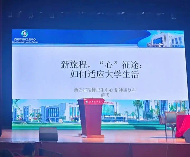 为切实做好大学生心理健康工作,助力新生更好、更快地适应大学生活,9月6日早上10点,我院联合经济管理学院在大礼堂举办了一场别开生面的心理健康讲座。本次讲座由西安市精神卫生中心精神科主治医师、陕西省心理学会委员薛飞老师主讲,两院2024级本科新生参加。讲座以“新旅程,‘心’征途:如何适应大学生活”为主题,从学习、交友等多个方面切入,结合典型案例、趣味测试等不同环节,引导同学们进一步认识自我,发掘可能。薛飞老师鼓励新生在面对未知时,应自尊自信、理性平和,勇敢迎接新挑战,书写人生新篇章。并特别提示新生:当自身心理困扰无法解决时,一定要积极寻求专业的心理健康服务和支持。本次心理健康讲座的开展,激发了学生关爱自身的意识,得到了广大新生的积极反馈。此后,我院将继续邀请校内外专家普及心理健康知识,讲授心理调适技能,培育我院学子形成正确的人生观、世界观和价值观,为我院学子的健康成长和全面发展保驾护航。