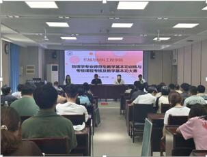 为提升物理学专业师范生教学能力,强化学科核心素养,贯彻落实规范教学的基本理念,6月20日下午,机械与材料工程学院开展物理学专业师范生教学基本功课程考核及教学基本功大赛。院长张运良、学院党总支书记武文斌、物理学专业教师参加本次会议,会议由物理学专业辅导员张汝淼主持。