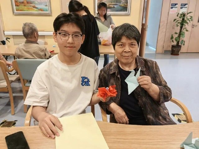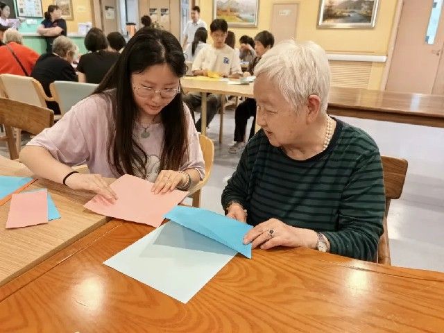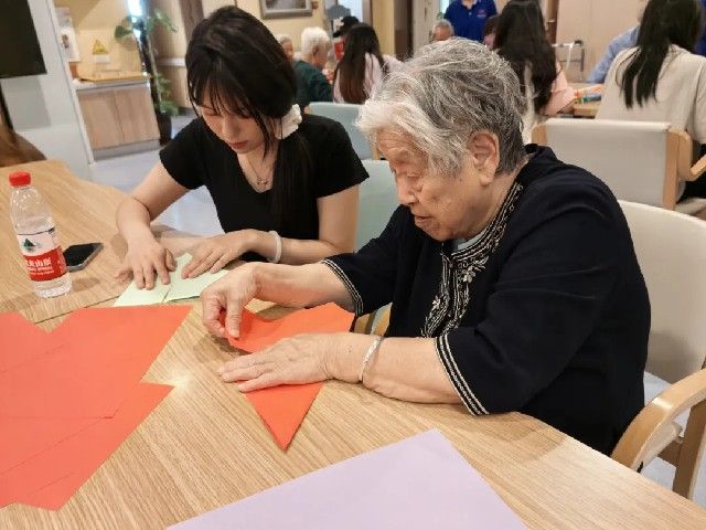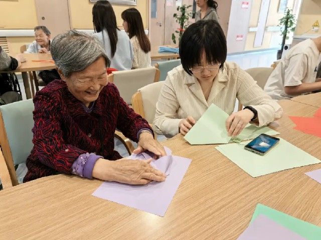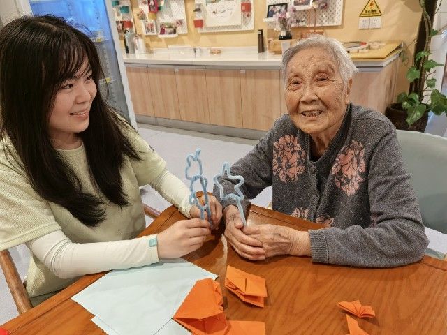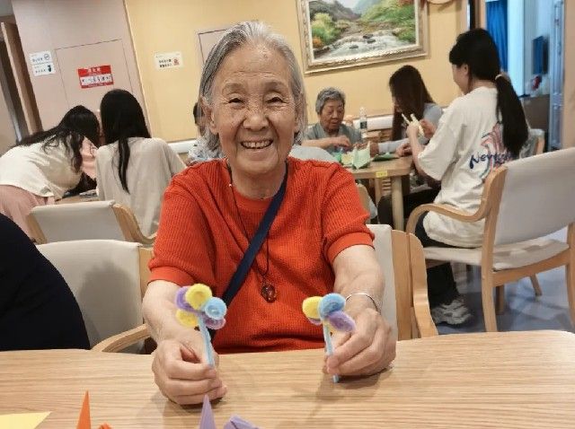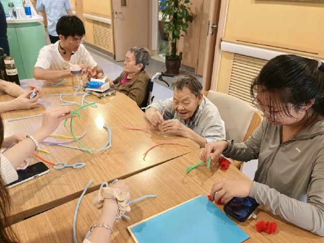 为丰富活动形式,同学们带去了彩纸、扭扭棒等手工制作材料,耐心地向老人教学,热情地陪老人聊天。活动结束后,同学们将作品送给老人,并与老人握手、拥抱,老人们对学生依依不舍,并表示:希望你们常来!物理2301权苗说到:能够为老人带来一份欢乐,我感到十分荣幸。今后,我会更加积极地参加此类活动,为社会公益事业贡献自己的一份力量。