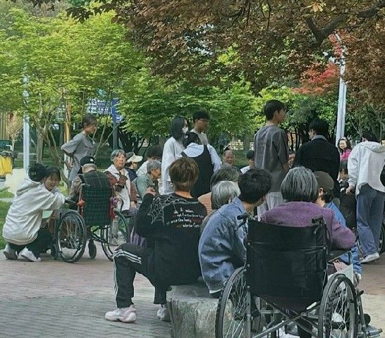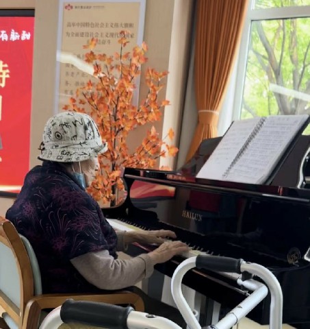 甫一到达,老人便对同学们表达了热烈的欢迎,一位奶奶还开心地为大家弹奏钢琴曲,同学们纷纷拍手叫好,一时间拉近了双方的距离。随后,同学们跟随养老中心工作人员,陪伴老人前往公园散步。