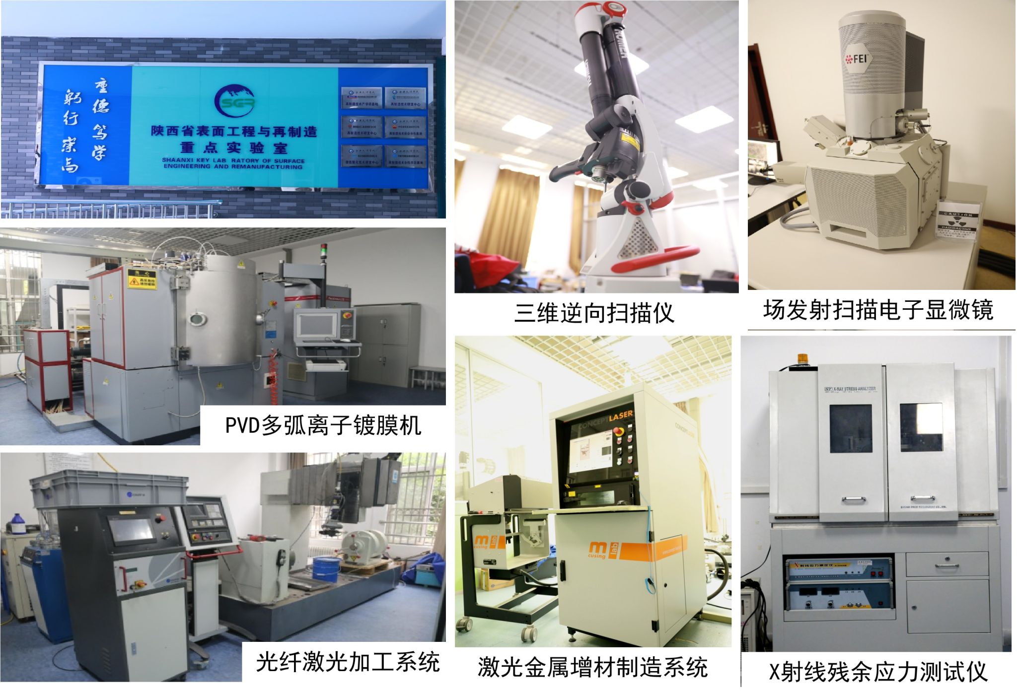 实验室拥有金属3D打印机、增减材一体机、多弧离子镀膜机、三维激光扫描仪、扫描电子显微镜等价值2300余万元的先进设备,面向社会开放共享。共建单位建有旋转透平机械激光再制造基地和再制造研究院中试基地。