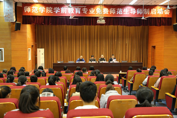 3月9日下午4时,师范学院在明德楼A区报告厅召开了“免费师范生导师制启动会”。师范学院院长王志强、党总支书记张军学、副书记李昉、副院长蔡军,27名受聘导师及144名免费师范生参加了此次会议。会议由蔡军主持,分为启动会和见面会两个阶段。