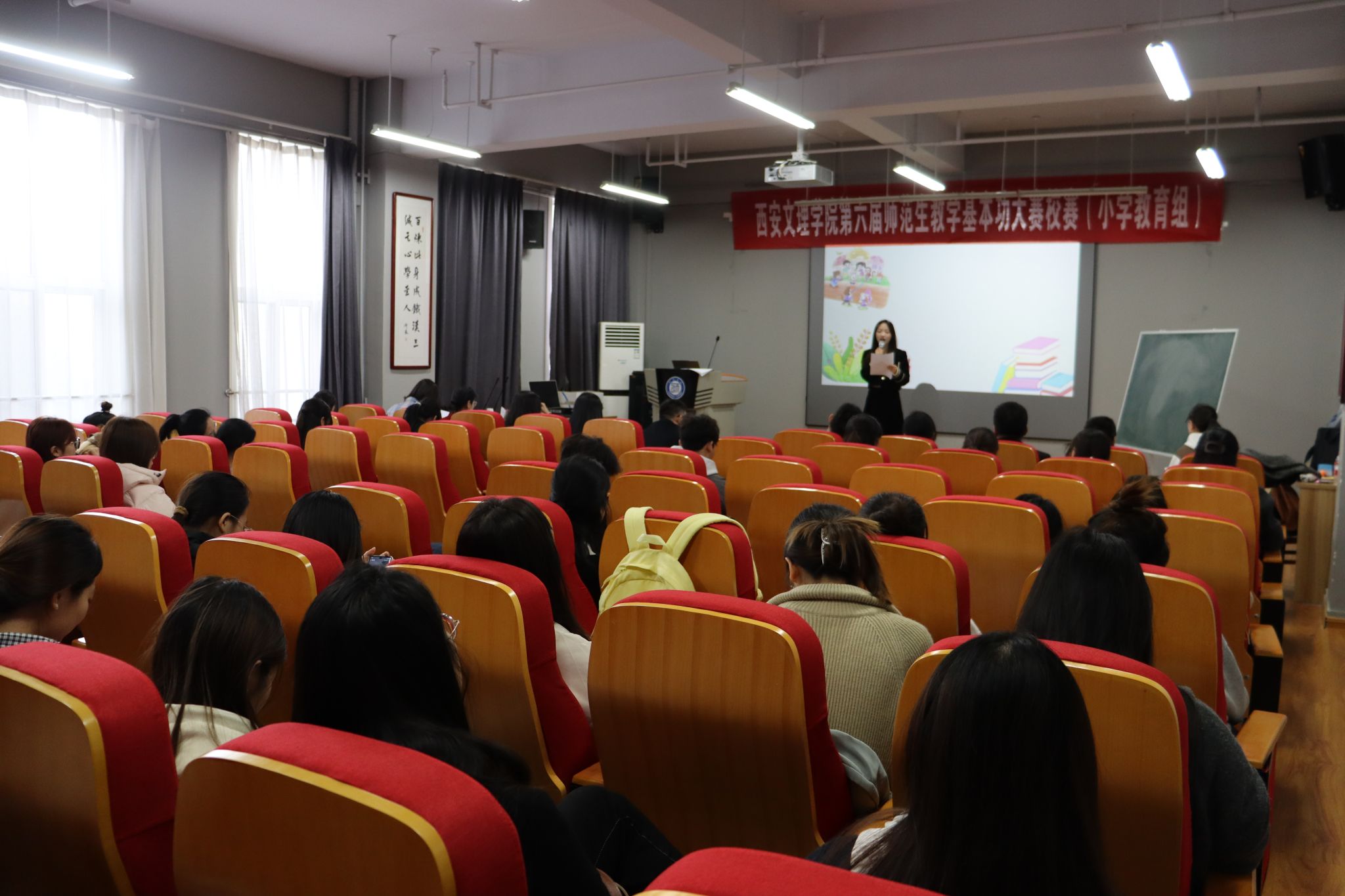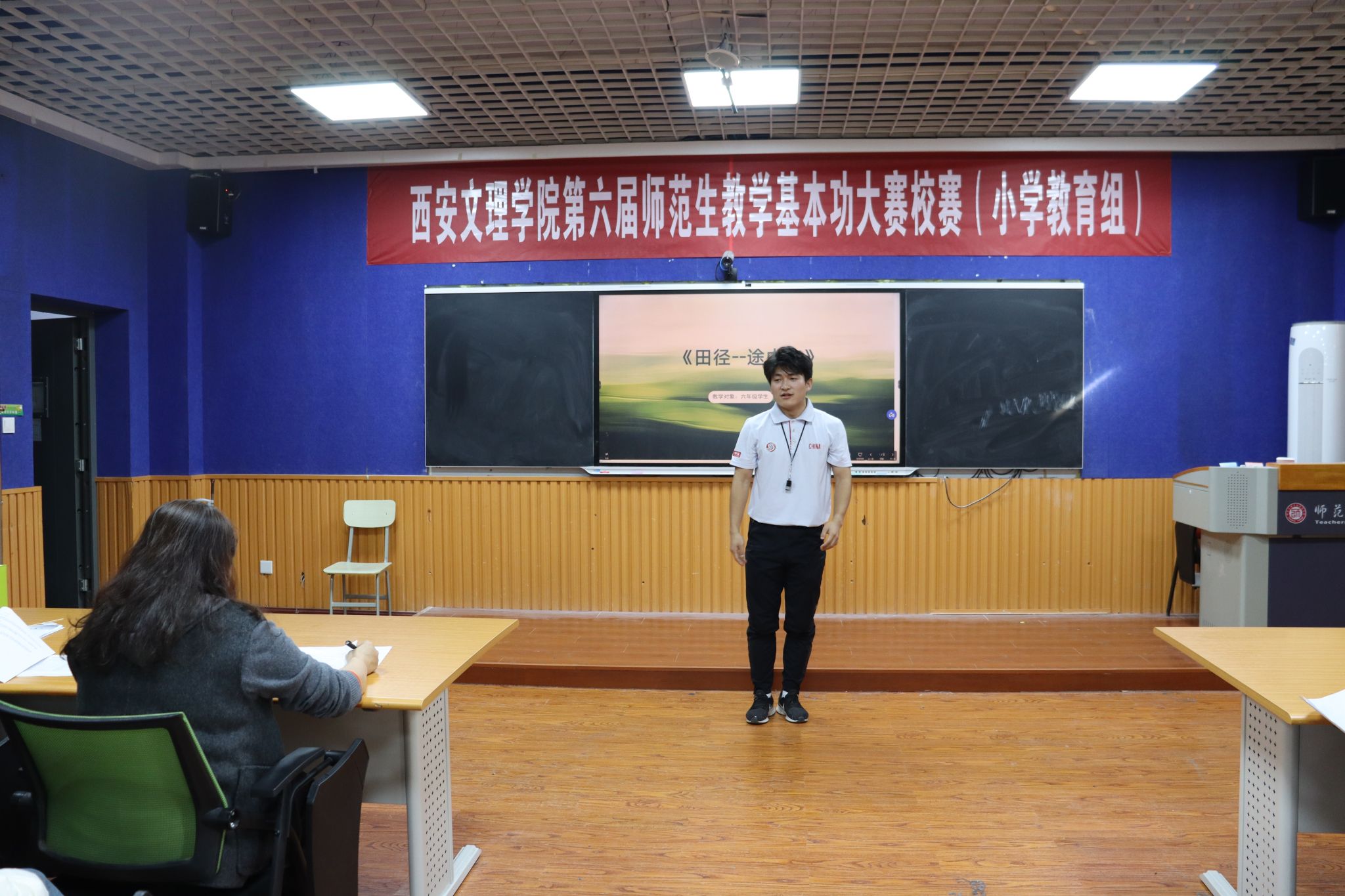 为了提升师范生的专业素养,锤炼教学基本功,以赛促教。11月12日,西安文理学院第六届师范生教学基本功大赛小学教育组在三个赛场顺利举行。本次大赛,邀请了延安市教育教学研究中心数学教研员董博涛、西安新知小学副校长李琳、师范学院教授吴婷婷、何薇、师范学院副教授雁丽、体育学院副教授费薇娜、师范学院副教授黄玲侠、洪杨担任比赛评委。西安文理学院教务处副处长张云哲、师范学院党总支书记李承、师范学院副院长国晓华、小学教育系主任闫成海及小学教育专业师生代表参与活动。