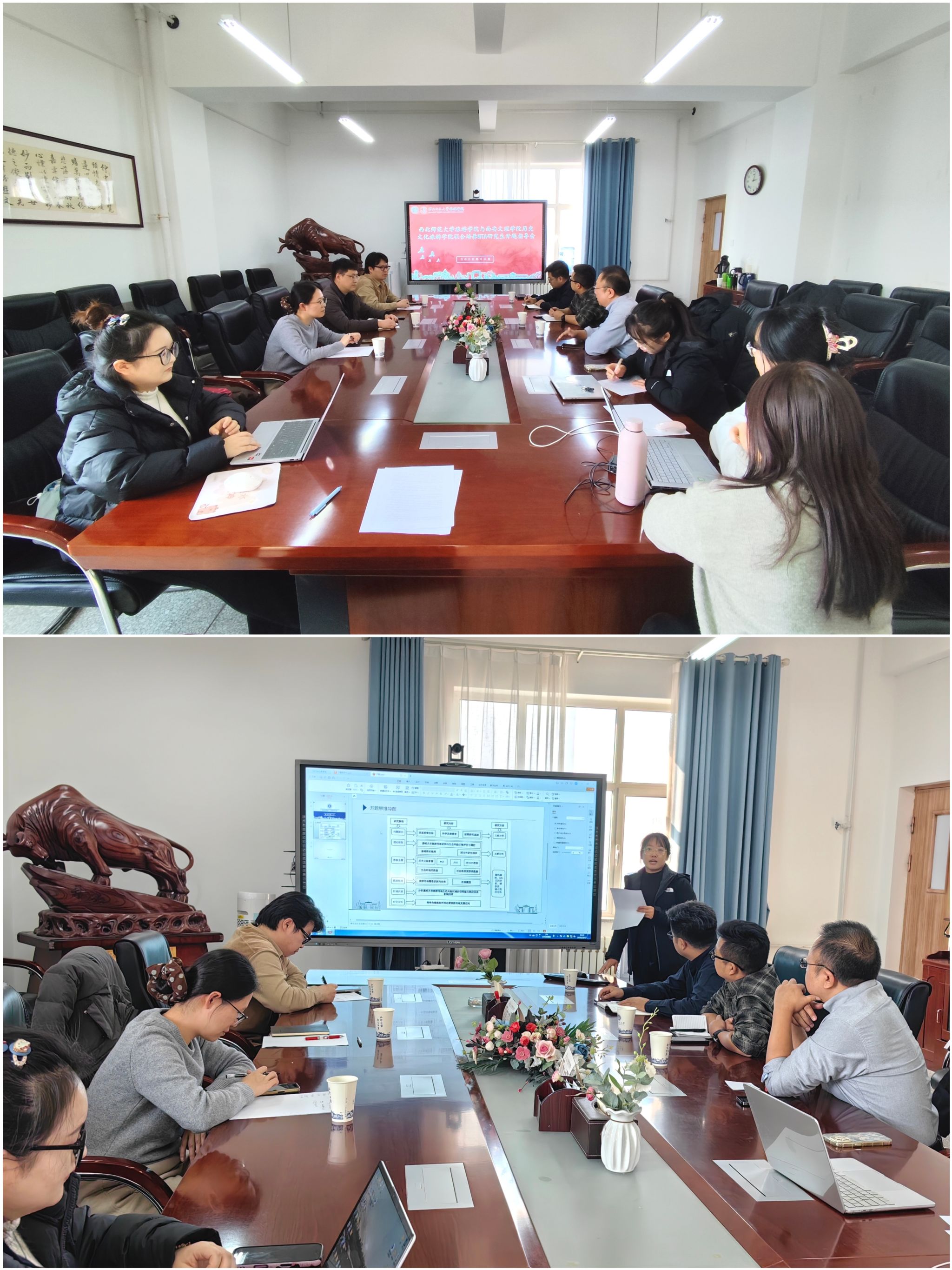 会上,柴亚林详细介绍了西北师范大学在旅游管理硕士研究生培养方面的模式、特色及成果。随后,参与联合培养的研究生匡大宇、高媛、兰婉婷等依次汇报了学位论文撰写思路和内容。双方教师审阅了开题报告,并从研究选题的创新性、研究方法的科学性、研究框架的合理性等方面展开讨论。