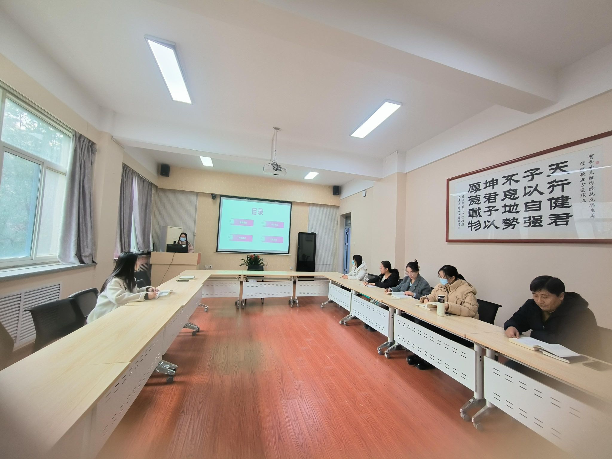 为进一步提升习近平新时代中国特色社会主义思想概论教研室的教学质量和育人水平,教研室于12月3日,在H0258会议室召开集体备课会,聚焦第十六章和第十七章的教学内容展开集体备课,本次备课会由张静老师和张金瑶老师担任主讲。