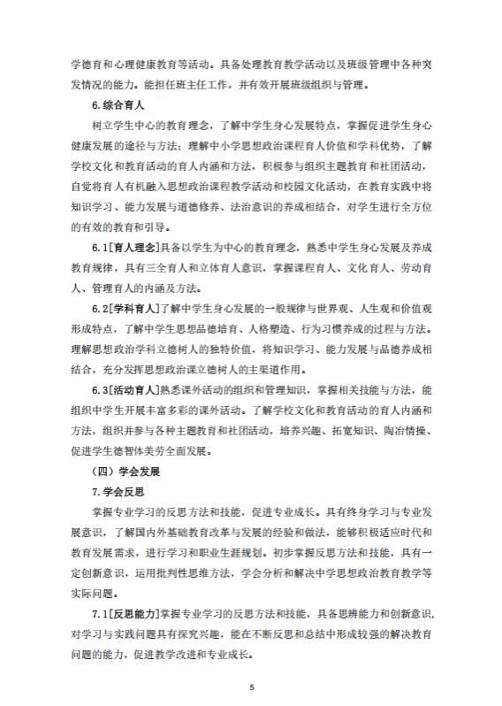 思想政治教育专业人才培养方案 (2022版师范教育方向)