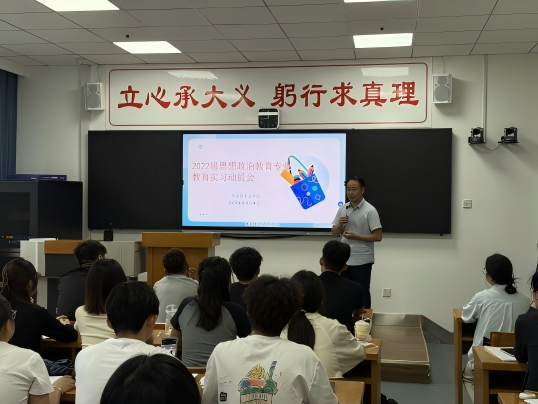 马克思主义学院于9月4日上午在H0354教室举行了2022级思想政治教育专业实习动员大会。学院院长刘维春、教学副院长申晓玲、学工办主任辅导员张思佳、教研室主任张胜军参加了会议。