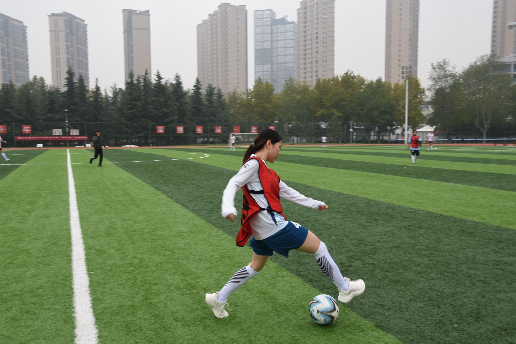 足球滚动间,队员们似离弦箭冲锋:进攻传切流畅,防守步步紧守。助威声未歇,声浪与跑位同频,直到我方两粒进球接连入网——球鞋蹭草声、球撞网脆响,全被呐喊裹成滚烫的浪,秋风里尽是青春拼劲。