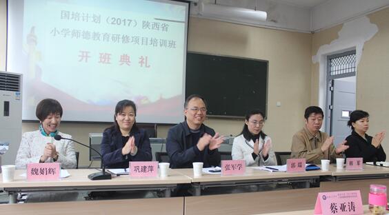 10月23日上午,国培计划(2017)——陕西省小学师德教育研修项目开班典礼在弘文楼H0354教室举行。西安文理学院校务委员、副校长郭瑞、西安文理学院马克思主义学院院长张军学、党总支书记巩建萍、副院长狄曼,继续教育学院副院长韩军出席了此次开班典礼。来自全省的50名参训教师参加了开班典礼。