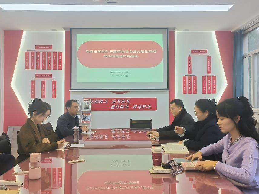 为进一步提升毛泽东思想和中国特色社会主义理论体系课程的教学质量和育人水平,教研室于11月5日,在H0256会议室召开集体备课会,聚焦第五章和第六章的教学内容,本次备课会由范雪峰老师和杨昕怡老师担任主讲。