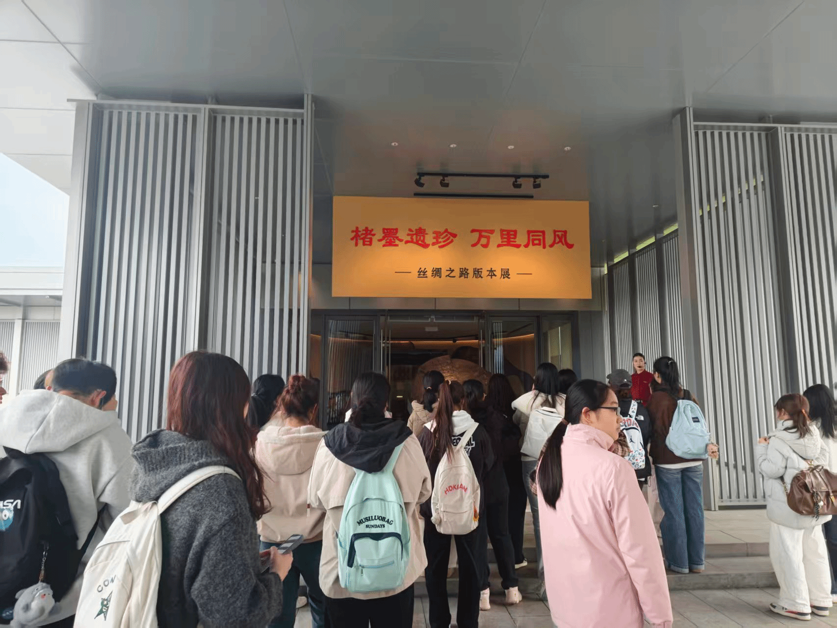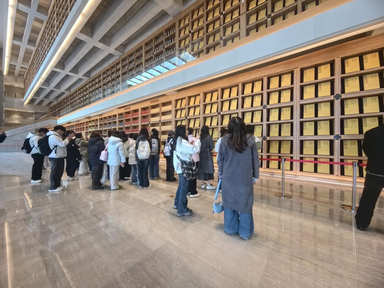 2025年11月12日,为推动《毛泽东思想和中国特色社会主义概论》课程与“大思政课”实践教学深度融合,马克思主义学院专任教师任雯、辅导员利婷婷带领大一思政专业学生走进西安国家版本馆,以“探寻版本奥秘,传承文化根脉”为主题开展沉浸式课程实践。学子们在圭峰山下的汉唐风格建筑群中,触摸版本里的历史印记,感悟中华文明的深厚底蕴,让思政学习从课堂延伸到文化现场。