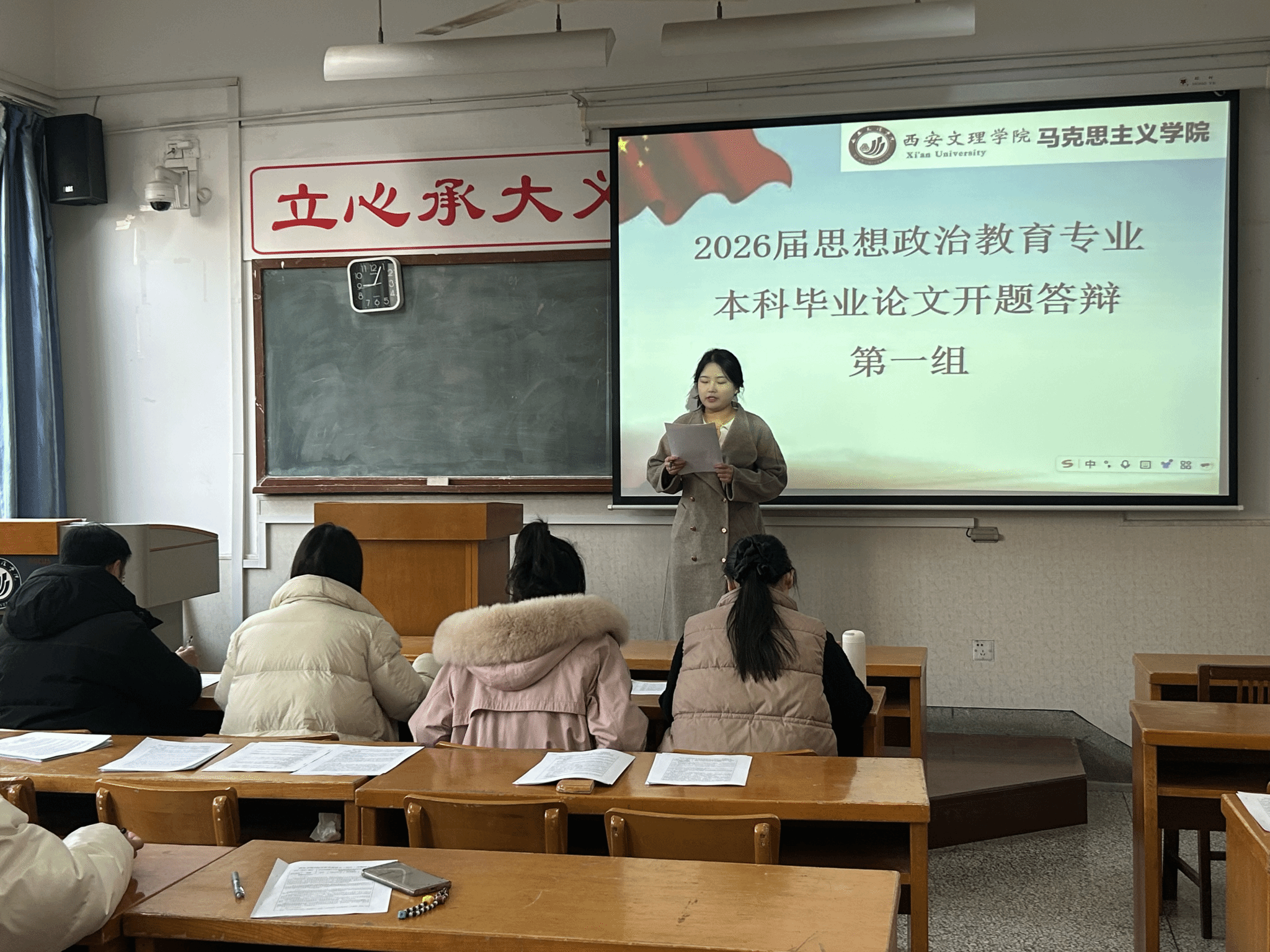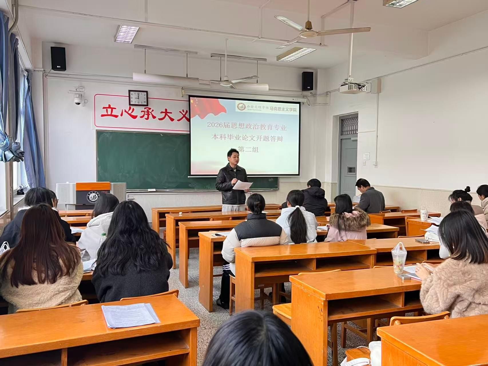 为保证马克思主义学院人才培养质量,确保学生顺利完成本科毕业论文的撰写,2025年12月25日,学院举行2026届本科毕业论文开题答辩。此次答辩涉及2026届本科思想政治教育专业全体学生,共94人,全体指导教师参加了开题答辩。