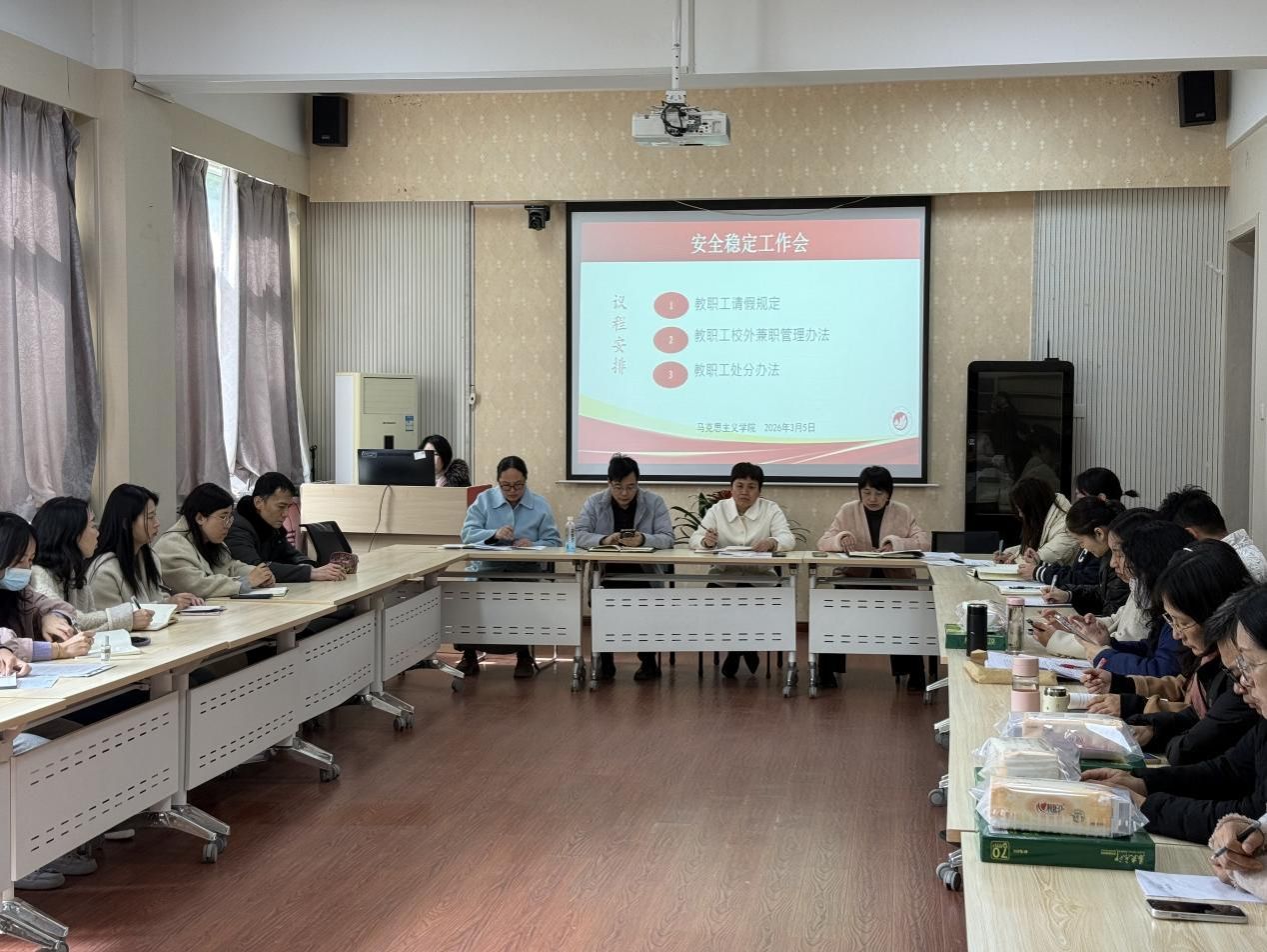2026年3月5日,马克思主义学院在H0258召开安全稳定工作会议,专题部署学院安全管理与教职工规范管理工作,压紧压实安全稳定责任。