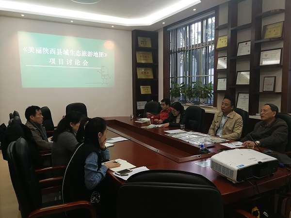 11月3日上午,《美丽陕西县域生态旅游地图》项目讨论会在西安地图出版社召开,生物与环境工程学院院长鲍锋、陕西师范大学马耀峰教授、陕西省测绘地理信息局李俊峰处长、陕西省新闻广电出版局何瑛处长、西安地图出版社毛腊梅社长和韩小武总编辑参加了此次论证会。