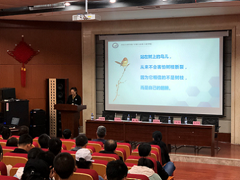 何凤琴主任首先通过对该系师资力量和科研平台的介绍,让同学们认识到生物技术系拥有雄厚的师资队伍和高水平的研究平台,为教学和科研提供有力保证;接着通过对历届学长学姐考研和就业去路的介绍,使他们对自己的未来充满了美好的憧憬。在接下来的教师代表讲话中,成晓霞老师通过三张幻灯片引申出来的人生哲理,让这场见面会别开生面,新颖独特,激励同学们做一只勇敢的鸟儿,展翅飞翔。随后,彩虹星球文化科技有限公司创始人王来库董事长分享了个人的创新创业经历,鼓励同学们带着问题去学习,做一个有思想的人,开启学院“企业家进课堂”系列活动的第三场。在学院领导、校友、企业家和教师代表为学生代表佩戴校徽这一环节中,使同学们感受到身为文理人和生物技术系大家庭一员的自豪感。最后,2020级新生代表武欣格以“砥砺前行 不负韶华”为主题,表达不怕困难,实现理想的决心。会议在双向选择导师环节中全体教师和同学们相互交流研究方向和研究内容的学术气氛中结束。
