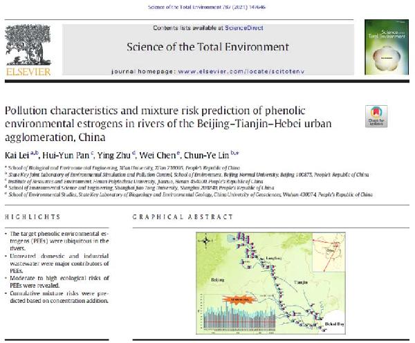 2021年9月15日,环境科学与生态学领域国际著名期刊《Science of the Total Environment》正式刊发了我院教师雷凯博士的学术论文“Pollution characteristics and mixture risk prediction of phenolic