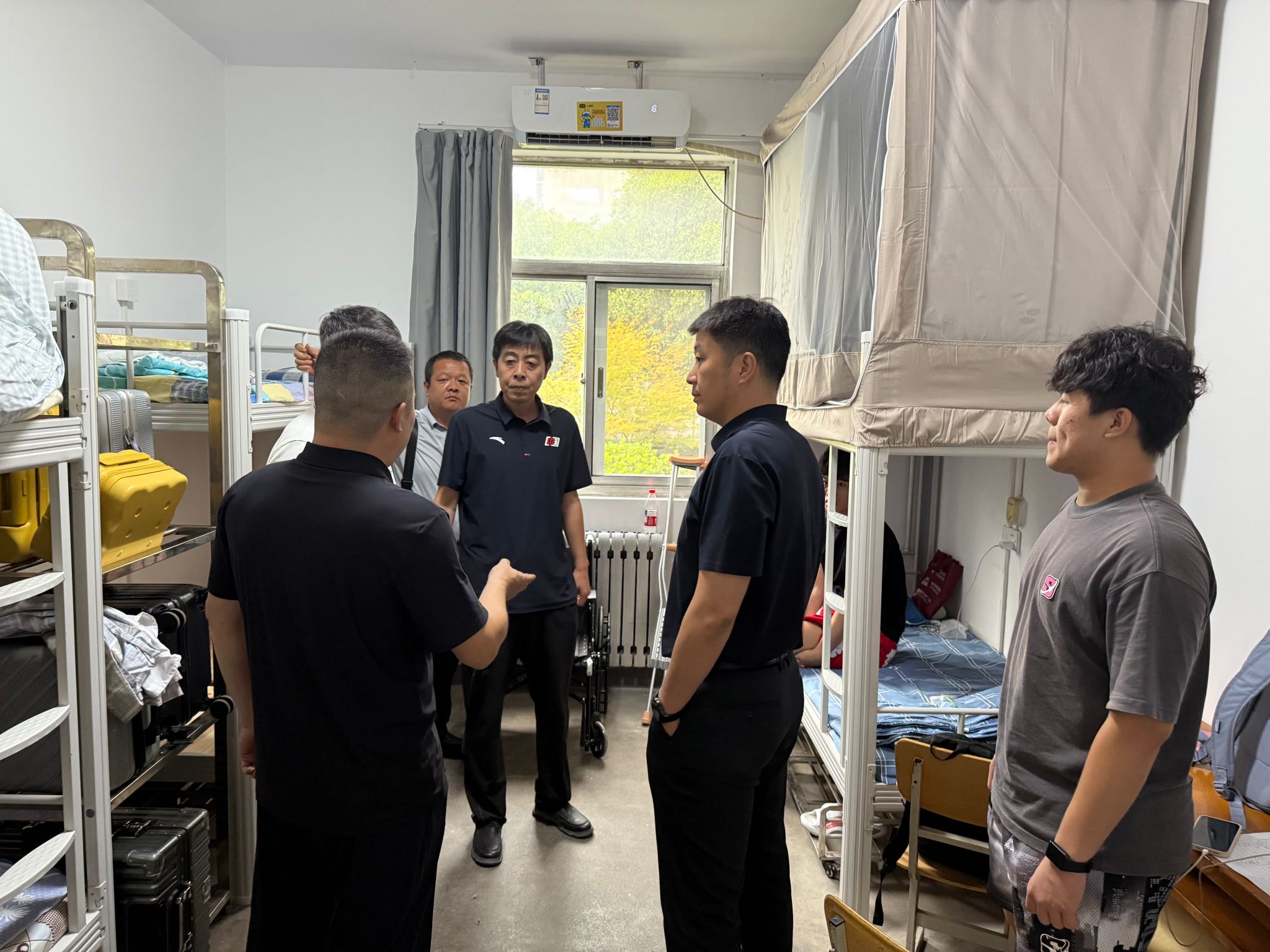 2025年8月27日,体育学院领导班子携辅导员团队深入新生宿舍,走访慰问2025级新同学,以暖心关怀助力他们开启大学生活。