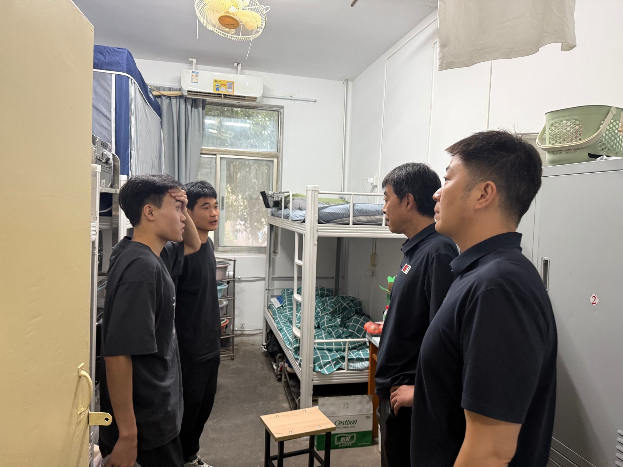 走访团队穿梭于多个区域的新生宿舍,每到一间寝室,领导们都与新生亲切攀谈,“家乡哪里呀?”“对新环境还适应吗?”“生活上有难题随时说”,一句句关切问候拉近了与新生的距离。院长查毅格外关注外地学生,特意叮嘱南方学子注意北方夏季防暑降温,合理安排作息,守护身体健康。