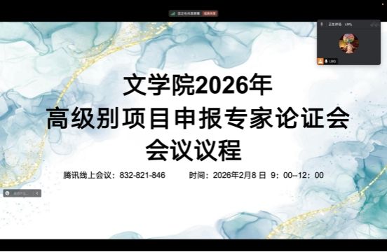 为进一步提升学院教师项目申报质量,助力高级别科研项目立项,文学院于2026年2月8日至9日,以线上形式举办2026年高级别项目申报专家论证会。会议特邀黄忠廉、李西建、钟书林三位专家进行个性化项目申报指导,文学院院长董洪杰及项目申报负责人参与,党总支委员李冰清主持。