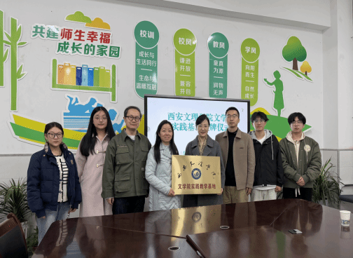 3月9日下午,文学院赴浐灞三小开展实践教学基地授牌仪式暨访企拓岗活动。党总支书记朱芳芳、副院长苏羽、系主任杜近都及专业教师送汉语言文学春季实习毕业生上岗,浐灞三小校长董红英热情接待。