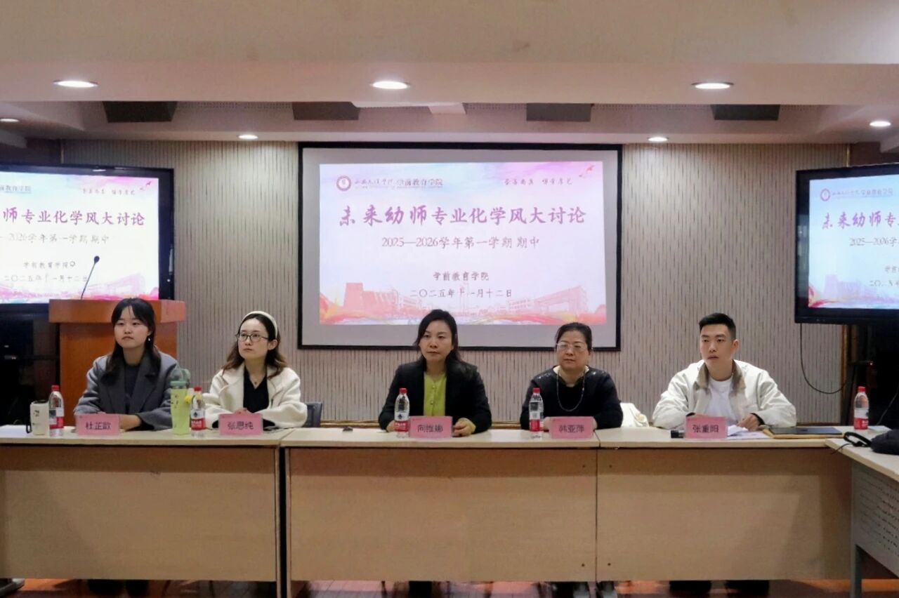 为持续深化“未来幼师”专业化学风建设工程,进一步总结阶段成效、查找存在问题、谋划提振举措,11月12日下午,学前教育学院在东铭一号大学生活动中心召开2025—2026学年第一学期期中学风建设大讨论。学院党总支副书记向维娜、学工办主任、副主任及全体辅导员出席会议,全体非毕业班班长、学习委员参会。