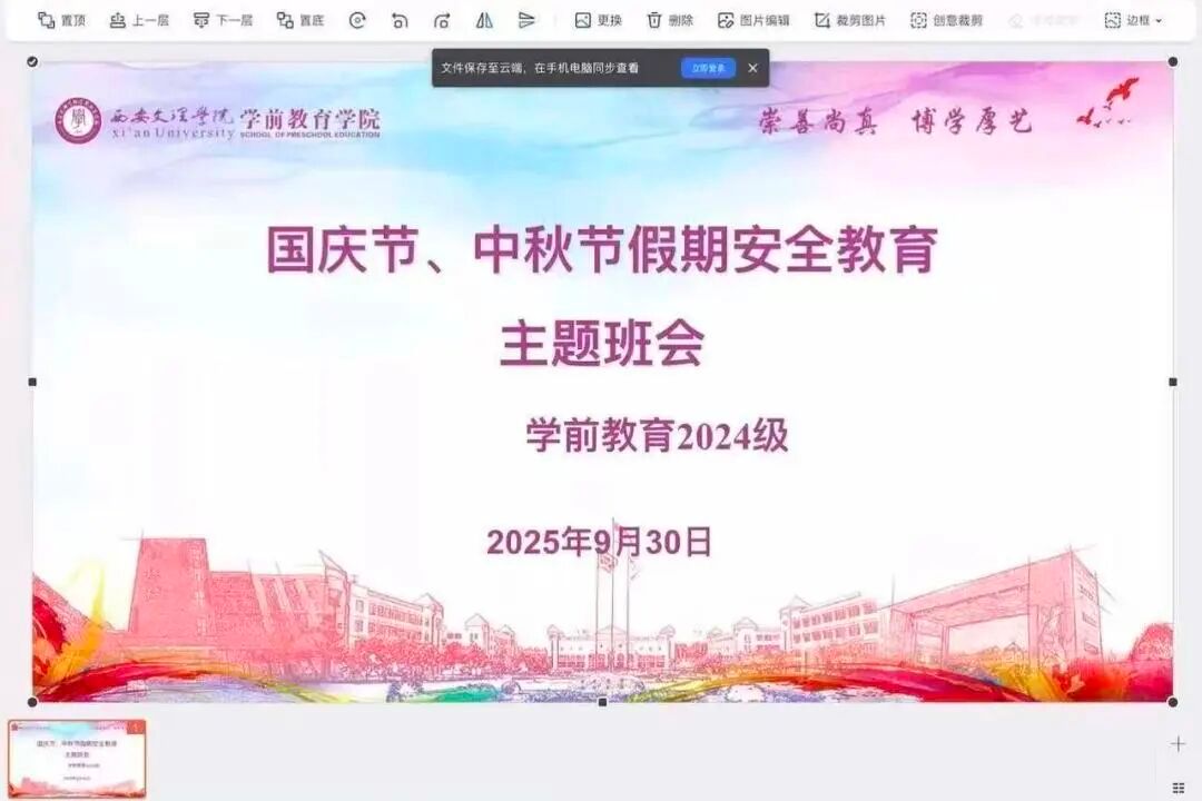 此次双节前安全教育主题班会,既覆盖了假期安全的共性要点,又精准对接了学院不同群体学生的个性化需求,让安全意识真正入脑入心。愿全体学前学子在享受双节假期的同时,时刻紧绷安全之弦,平安、愉快度过假期,以饱满的精神状态迎接节后的学习与工作。