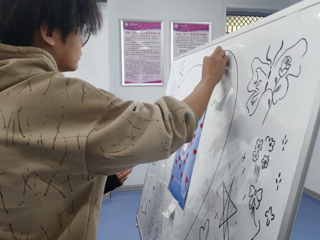 在“逐梦远方”环节,同学们伏案提笔,将“学好专业知识”、“勇敢参加社团”、“常给家人打电话”等真挚期许写进便利贴,贴满“时光墙”。每一张便签,都是一份对未来的郑重承诺,也是一份与自我成长的深刻对话。
