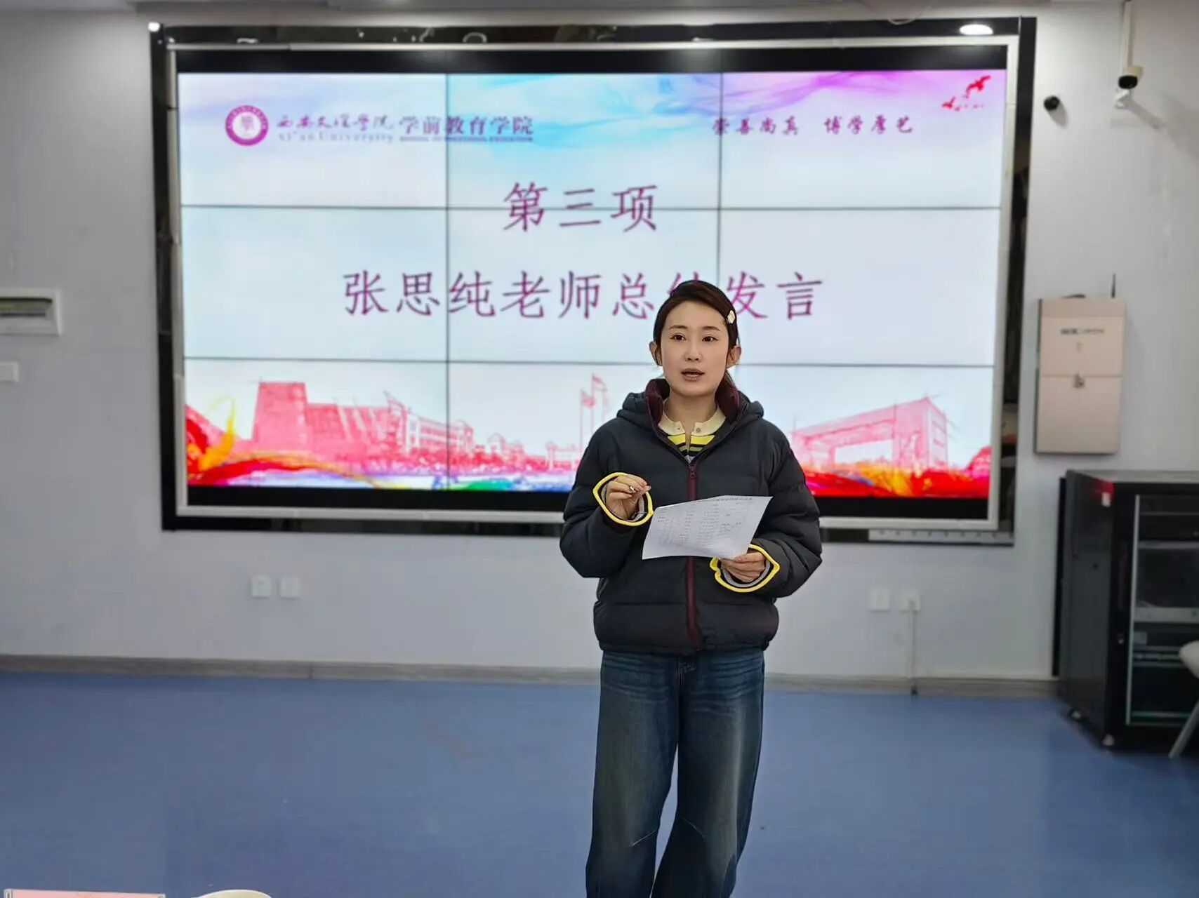 为进一步充实学院招生志愿宣讲团力量,系紧学生社会实践与学院招生宣传的双向纽带,近期,学前教育学院第二届招生志愿宣讲团招新暨聘书颁发大会在H201教室顺利召开。学前教育学院党总支副书记向维娜及学工办全体老师担任本次活动评委,本次大会由燕雨蓉主持。