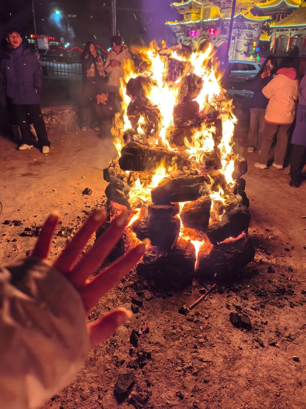 这组照片定格了北方春节夜晚的热闹与温暖:夜空里,金色烟花如星雨般绽放,在墨色天幕上划出璀璨轨迹;地面上,熊熊旺火堆起,橙红火焰舔舐着垒叠的炭块,人们围在一旁,在暖光里感受年的温度;手中的仙女棒迸出细碎银花,在夜色里划出温柔的光痕。这是典型的“垒旺火”民俗场景,旺火象征着新一年红红火火,烟花与仙女棒则点亮了团圆的喜悦。火光交织间,既有传统祈福的厚重,也有青春肆意的鲜活,每一缕光都在诉说着对马年的期盼与热爱。
